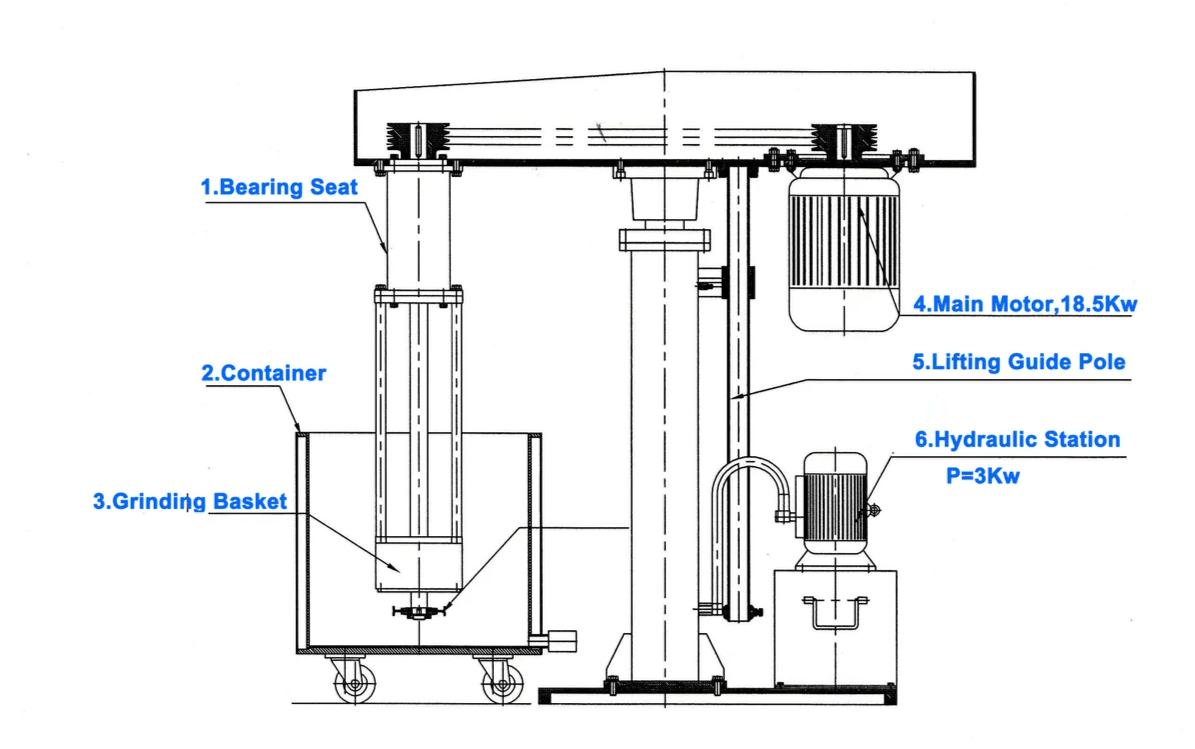 The hydrauliclifting basket bead sand mill is a wet grinding device that integratesdispersion and grinding functions.