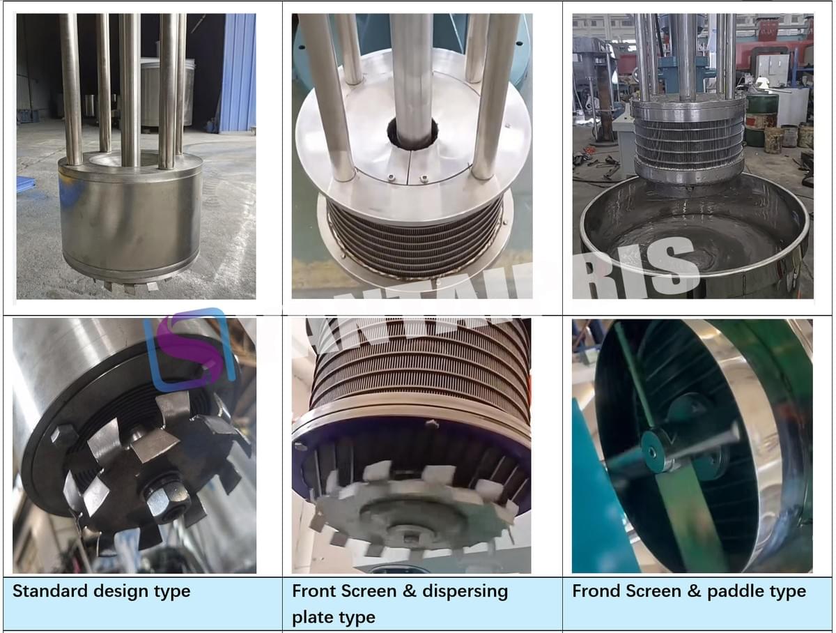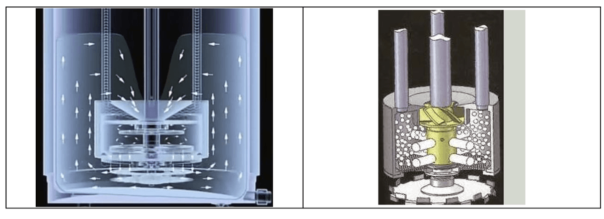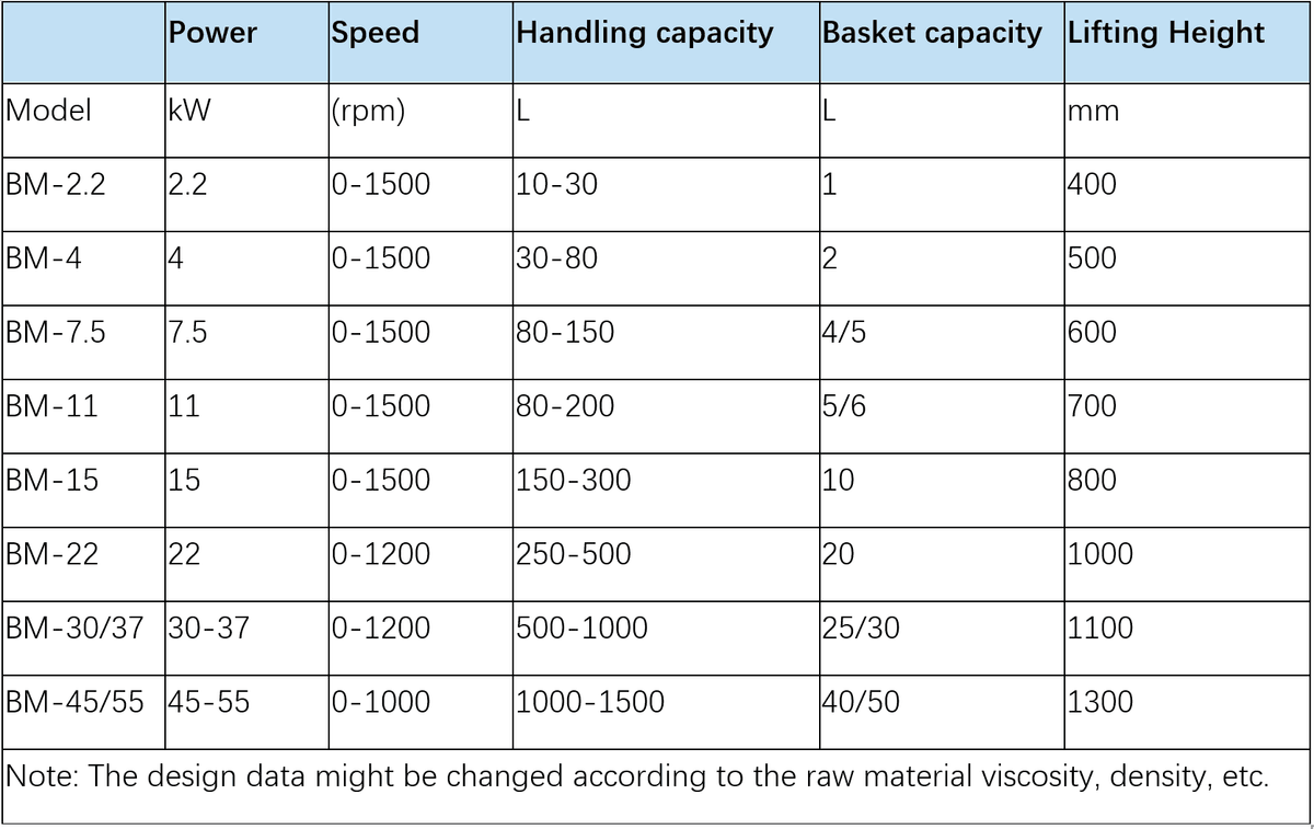 It combines the two processes into one. Aself-priming impeller at the inlet of the grinding basket generates a powerfulvortex during high-speed rotation, accelerating the feeding process. The groundmaterial exits from the bottom of the grinding basket.