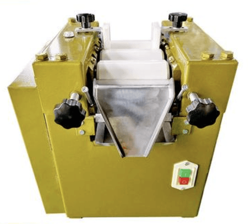 3. Usually, the material of the roller of the three-roller mill is centrifugal casting of chilled alloy cast iron, and the surface hardness is above HS70°, so it can produce uniform and delicate high-quality products.
